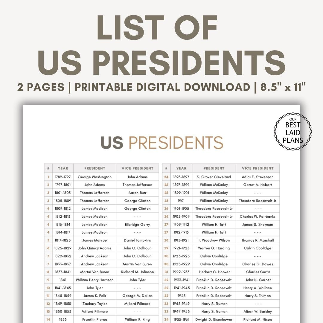 Print out this list and hang it up in your home or office to commemorate the incredible individuals who have led our nation. From the founding fathers to modern-day presidents, this list includes all 46 of the Commanders-in-Chief who have served the United States. Whether you’re a history buff or just looking to add a touch of patriotism to your space, this printable list is the perfect way to celebrate the Presidential Parade.
